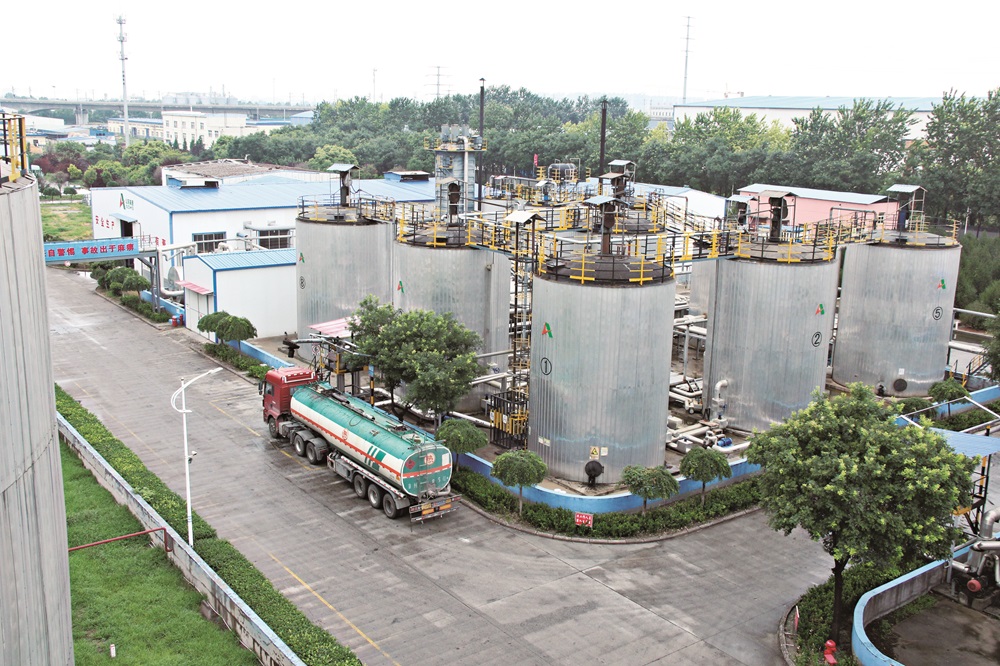 生產基地擁有6000立方米儲存大罐10個,基質瀝青一次性儲存能力為6萬噸,年周轉能力可達30萬噸,改性瀝青設計年加工能力30萬噸。