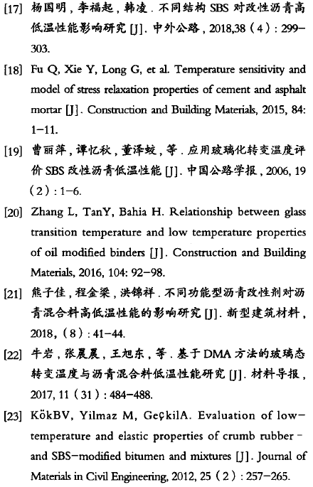 c)玻璃化轉(zhuǎn)變溫度從粘彈性角度分析改性瀝青的低溫性能,兼具理論和實際意義,可以有效反映改性瀝青的低溫性能;然而,采用該指標(biāo)評價改性瀝青的研究相對較少,其對不同種類改性瀝青低溫性能的適用性仍有待進一步開展。
