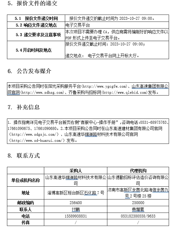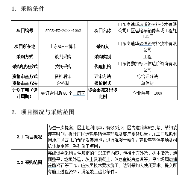 山東高速華瑞道路材料技術(shù)有限公司廠區(qū)運(yùn)輸車輛停車場工程施工項目談判采購公告