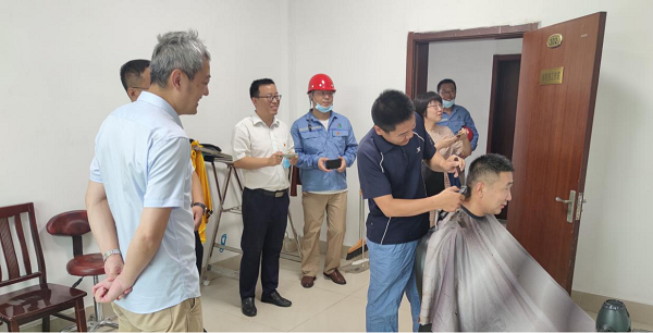 李鋒副書記一行首先向在酷暑中堅守崗位的加工廠職工傳達了建材集團黨委和工會的關(guān)懷與慰問,真心實意地將防暑降溫物資發(fā)放至每位一線員工手中,并隨后來到袋裝瀝青裝袋區(qū)、SBS瀝青生產(chǎn)車間、田明偉工作室、職工活動室、職工籃球場等場所,詳細了解了一線員工的生產(chǎn)與工作情況、日常文化與休閑娛樂狀況,叮囑大家在極端天氣中增強自我保護意識,注意個人防暑降溫,做好夏季安全生產(chǎn)。